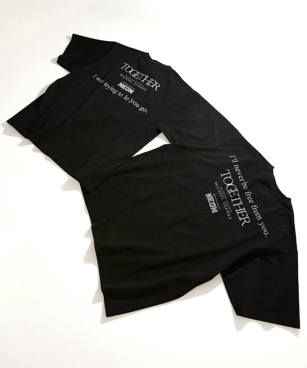 なお、この凝ったグッズのデザインを見たマイケル・シャンクス監督はいたく感激。袖が繋がった連結Tシャツに対し、「リビングで映画を観るとき、切り離さずに妻と一緒に着たい。別れられない2人になりそうです」と喜びのコメントをしている。本作の物語は自身のパートナーとの経験がインスピレーションになっているそうだが……幸せなら、OKです!