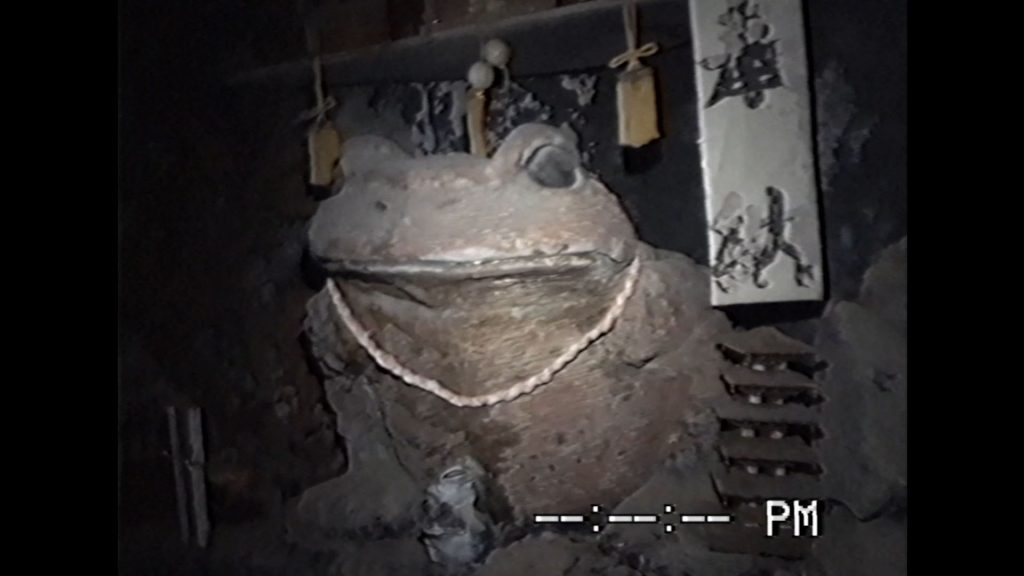 ポスタービジュアルでは、ビデオカメラを回すカップルのうしろで「ガマランド」のシンボルである巨大なガマカエル像が並々ならぬ存在感を放っている。
